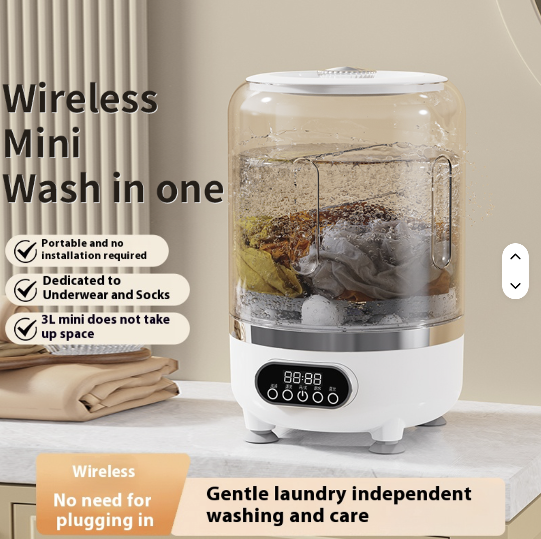Această mini mașină de spălat portabilă este ideală pentru spălarea rapidă a lenjeriei intime, șosetelor sau hainelor delicate, fără să mai pornești mașina de spălat mare.